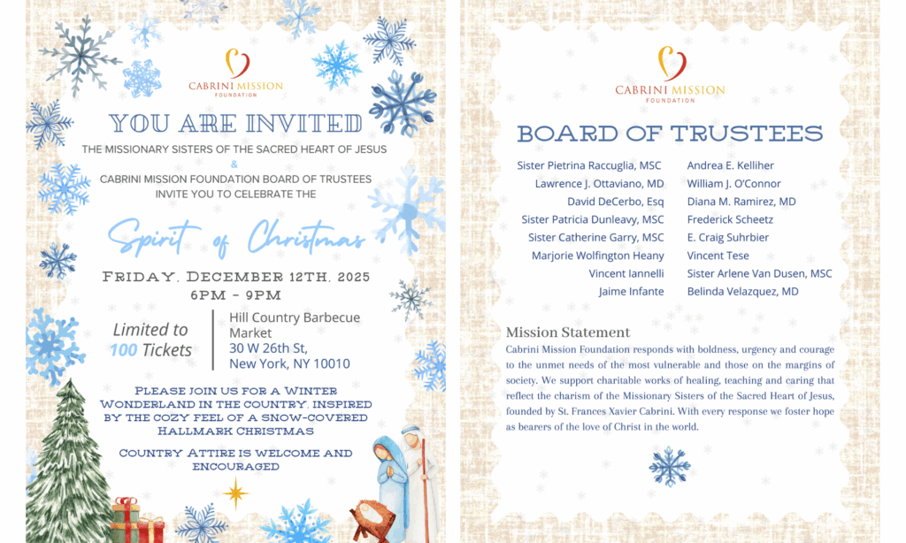 The Cabrini Mission Foundation Board of Trustees invite you to celebrate the Spirit of Christmas.